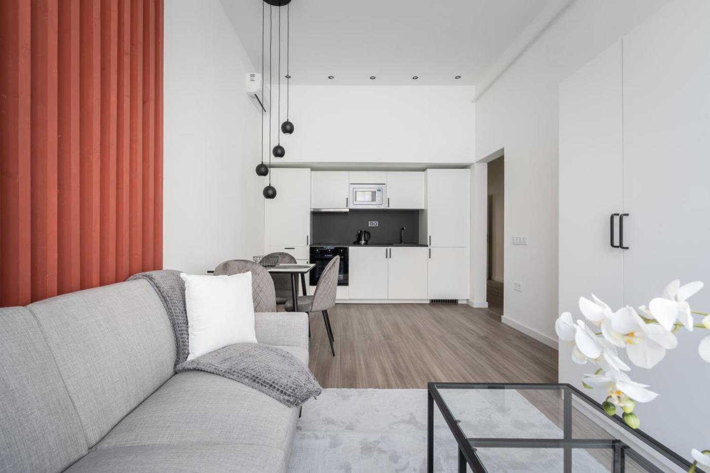 One-Bedroom Apartment. The air-conditioned apartment features 1 bedroom and 1 bathroom with a shower and a hairdryer. Guests can make meals in the kitchen that comes with a stovetop, a refrigerator, an oven and a microwave. The apartment provides a washing machine, a seating area, a dining area, a wardrobe, as well as a flat-screen TV with streaming services. The unit offers 2 beds.