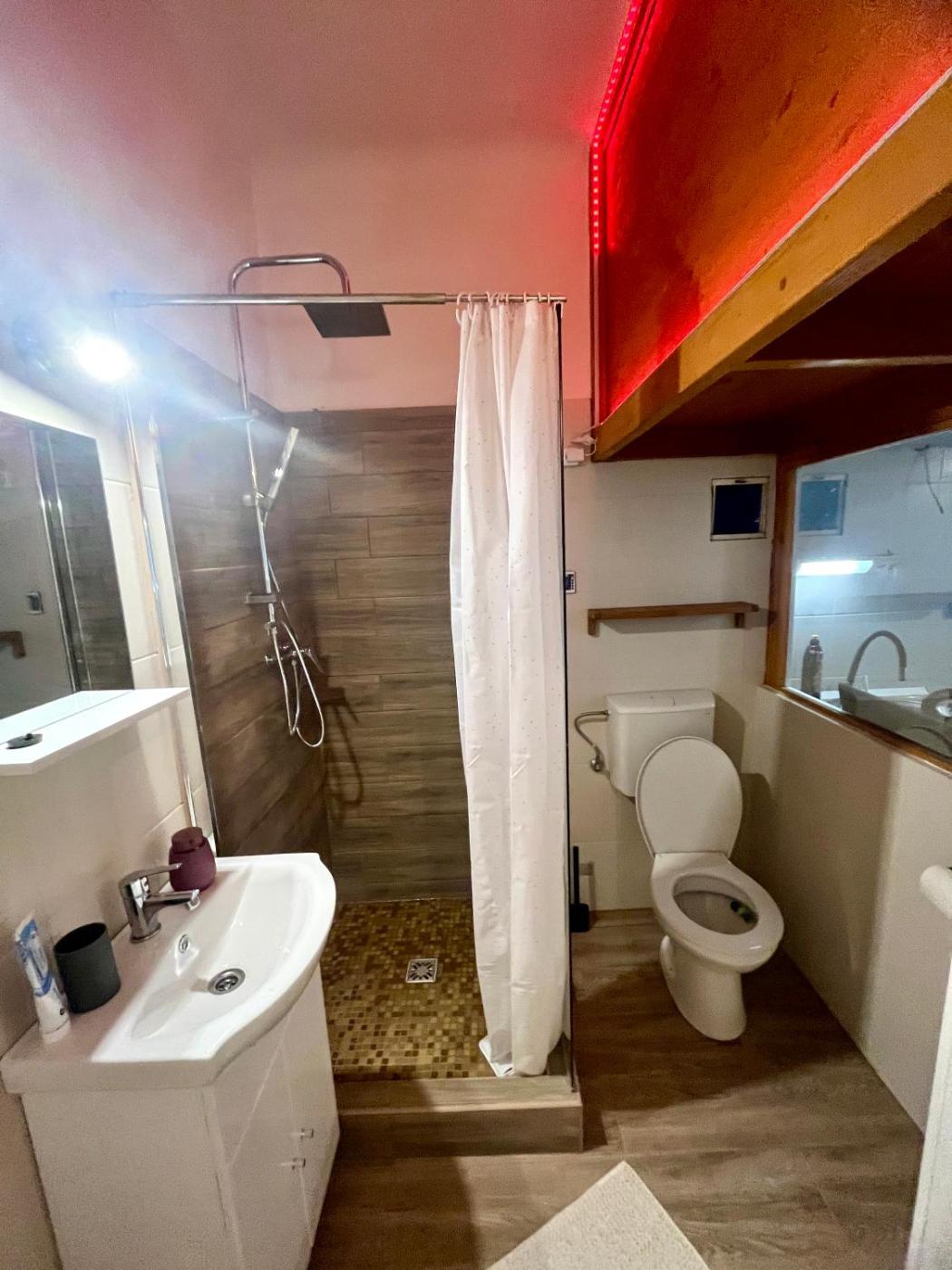 Studio. The studio features a dining area, an electric kettle, as well as a private bathroom boasting a shower and a hairdryer. A kitchen fitted with a stovetop, a refrigerator and a microwave is available for cooking and storing food. This studio has parquet floors, heating, a flat-screen TV and a quiet street view. The unit has 1 bed.