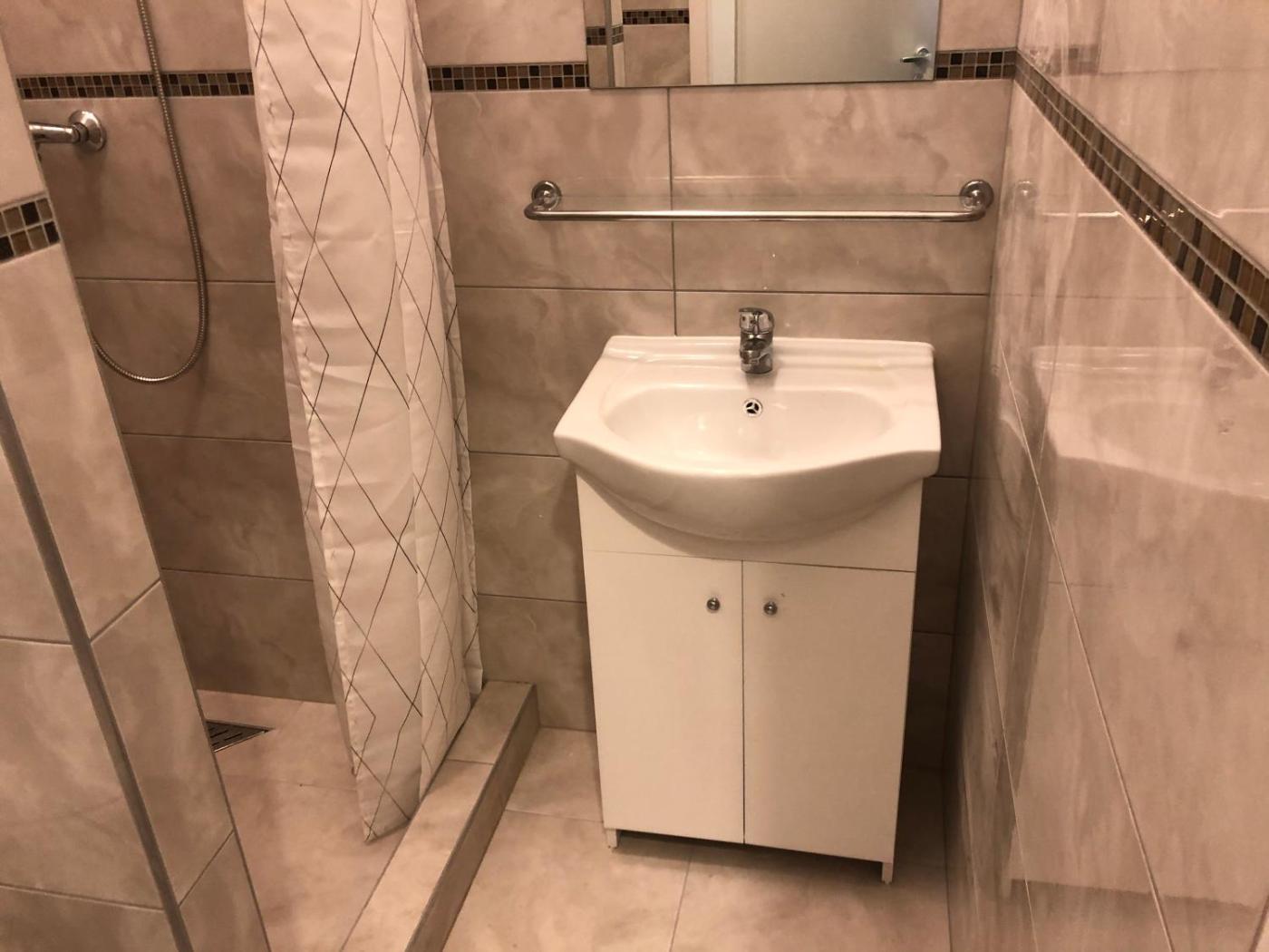 Studio Apartment. This apartment consists of 1 bedroom, kitchenette and 1 bathroom with a shower. Guests can make meals in the kitchenette that is equipped with a stovetop, a refrigerator, kitchenware and a microwave. The apartment provides a wardrobe, an electric kettle, parquet floors, heating, as well as a flat-screen TV. The unit offers 1 bed. ;