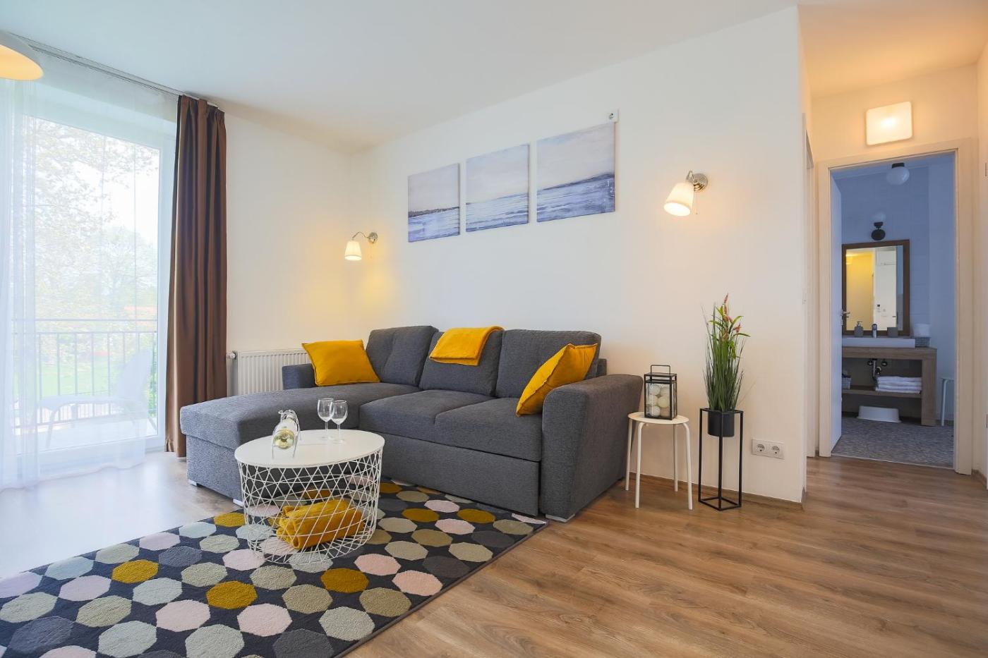 One-Bedroom Apartment. The private pool and sauna are the special features of this apartment. This air-conditioned apartment comprises 1 living room, 1 separate bedroom and 1 bathroom with a shower. Guests will find a stovetop, a refrigerator, kitchenware and a microwave in the well-fitted kitchen. The apartment also provides guests with a barbecue. This apartment features soundproof walls, flat-screen TV with cable channels, garden views, as well as winechampagne for guests. The unit offers 2 beds.